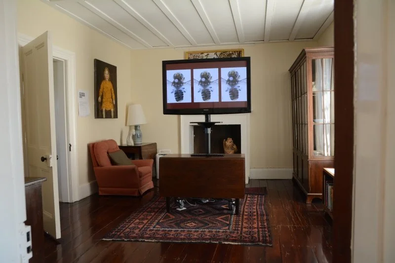 The interactive installation, The Extinction Poker Machine, proposes to animate a warning about the loss of biodiversity. In the first in the series, a selection from an online collection of 206 digital images of native bees is reanimated in apparent flights of the long dead, across three electronic screens, animated by a generative system. Not the model from biology, but one based on the integers favoured by computers. The system halts the flight of the bees on each of the screens successively, but randomly. A pause, before they take to flight again. Inevitably the generative system will align all three images to match. B Movie was first installed in Bundanon Homestead for the birds and the Bees, Siteworks event, 2017.